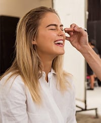 "I have my mum to thank for my naturally big brows!" says Steph. But that doesn't mean she neglects maintaining them. "I don't need to get them shaped, but I do clean up the strays when needed. I love filling them in and brushing them up for a more dramatic brow look," she says. Chubby Stick Shadow Tint for Eyes in Ample Amber is the perfect bronzy nude eye shadow shade to complement her signature brows.