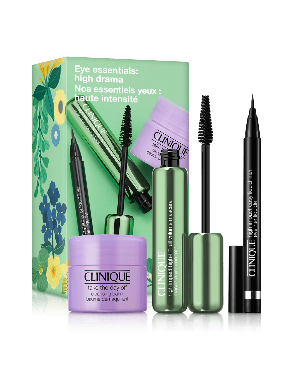 Three eye makeup essentials. Mascara and liner to create eye drama and one fan-favourite makeup remover to take it off.