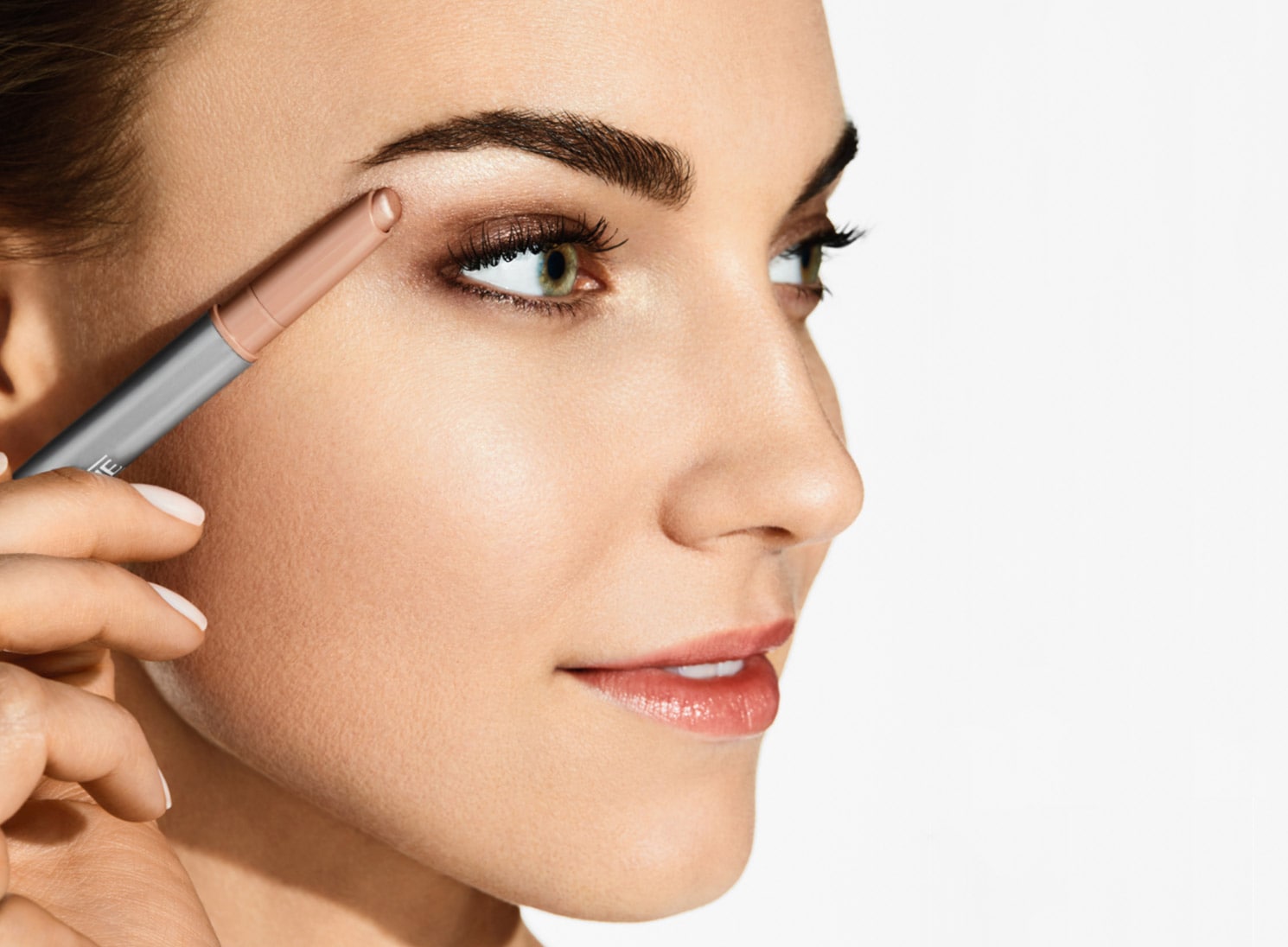 • Find the starting point of your brow by aligning the Quickliner™ for Brows Eyebrow Pencil vertically with the outer edge of your nose to determine where your eyebrow should start. Mark this point lightly.