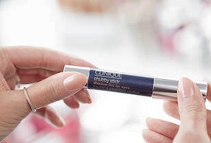 To get Sunina's look: First, line your upper and lower lash lines with a navy blue eyeliner, like Skinny Stick in Skinny Jeans. Next, use an angled brush to sweep Lid Pop in Aqua Pop from your lash lines up towards your creases and extend the shadow past your outer lashes to create the cat eye flick. Blend the dark blue liner and azure shadow to create an ombré effect. This trend is all about the eyes, so Sunina went for a bold brow and jet-black mascara, and kept her lips neutral but full of dimension by layering two shades of sparkling pink: Long Last Glosswear in Bamboo Pink and Air Kiss.